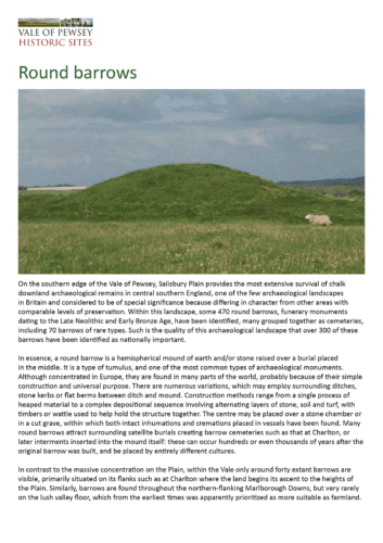A round barrow is indicated by a mound over the top of a burial chamber.