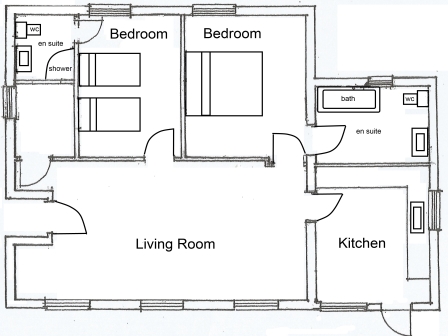 2 bedrooms (1 x twin with en-suite shower room, 1 x double with en-suite bathroom)