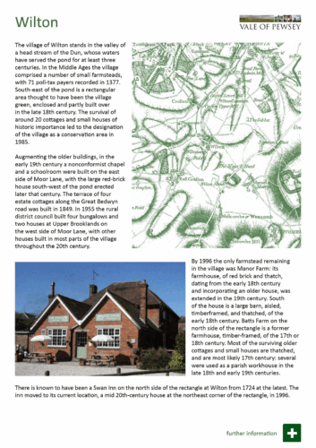 The very pretty village of Wilton has a duck pond, a pub and is home to Wilton Windmill. It is also the site of Wilton Water, which is the reservoir for the Kennet & Avon Canal, located close by.